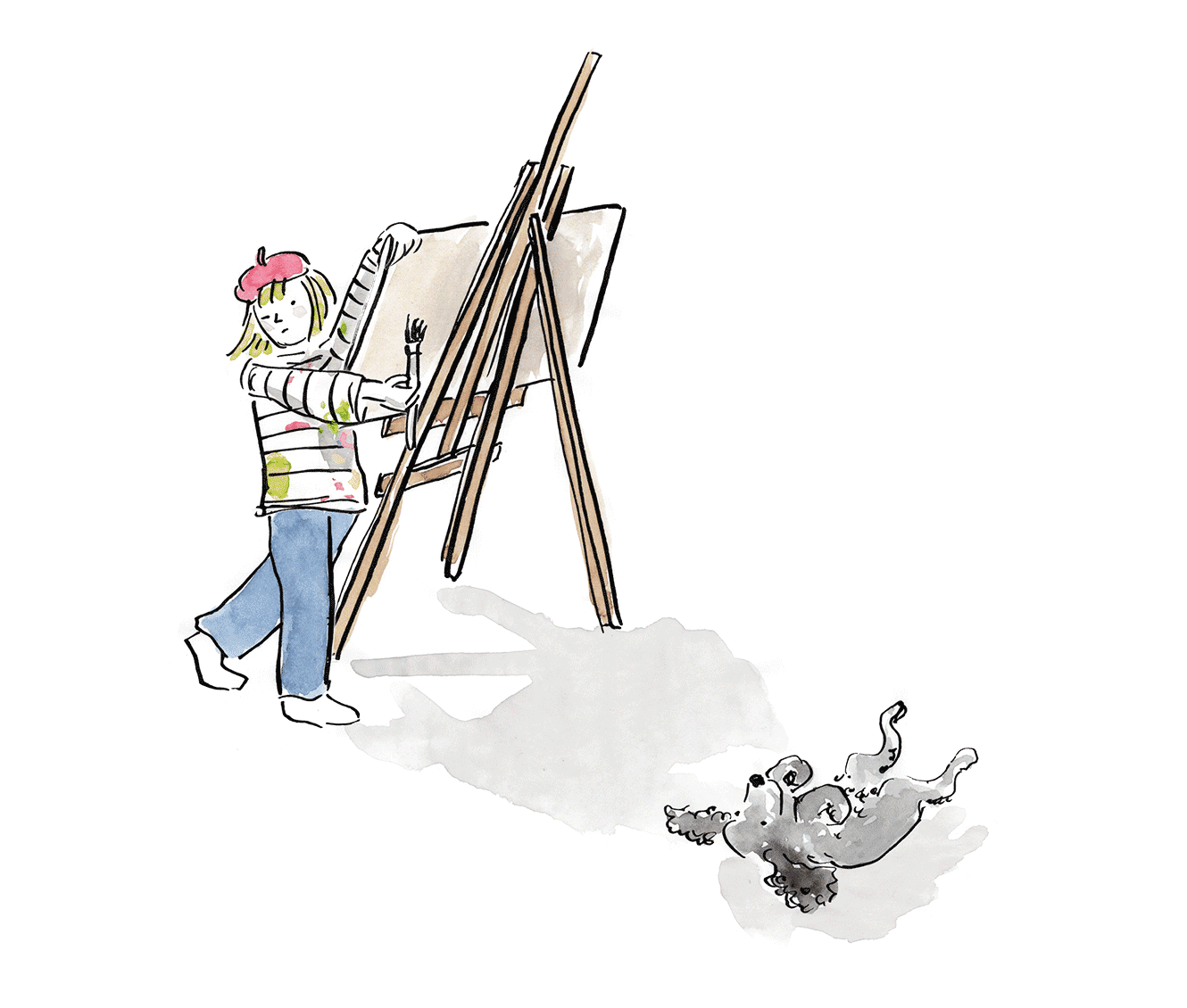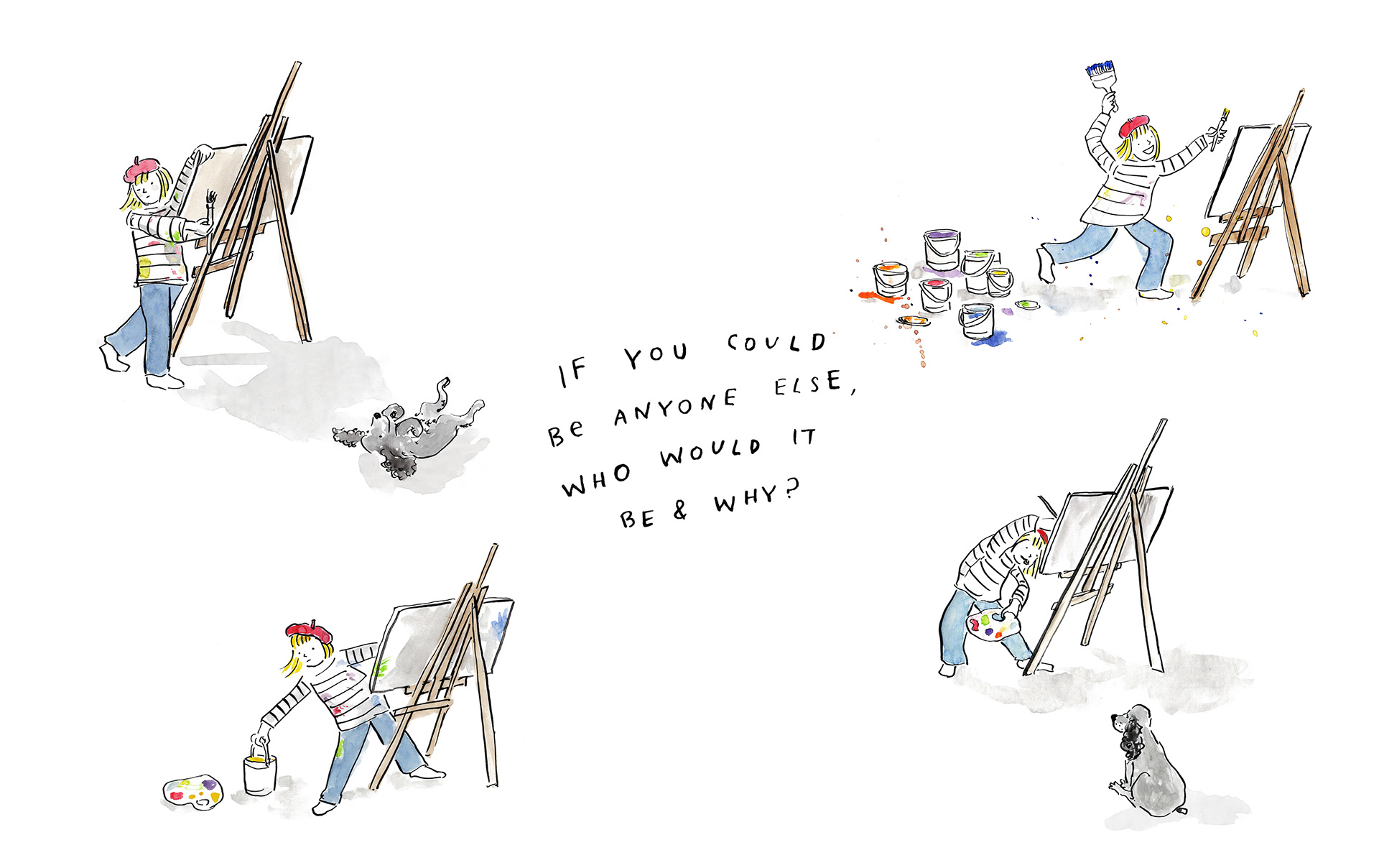 A series of illustrations, made using acrylic ink and watercolour, exploring my responses to various prompts. The character became a visual representation of my inner child, and a regular across my illustrations, as a way of expressing my fears, thoughts and motivations.