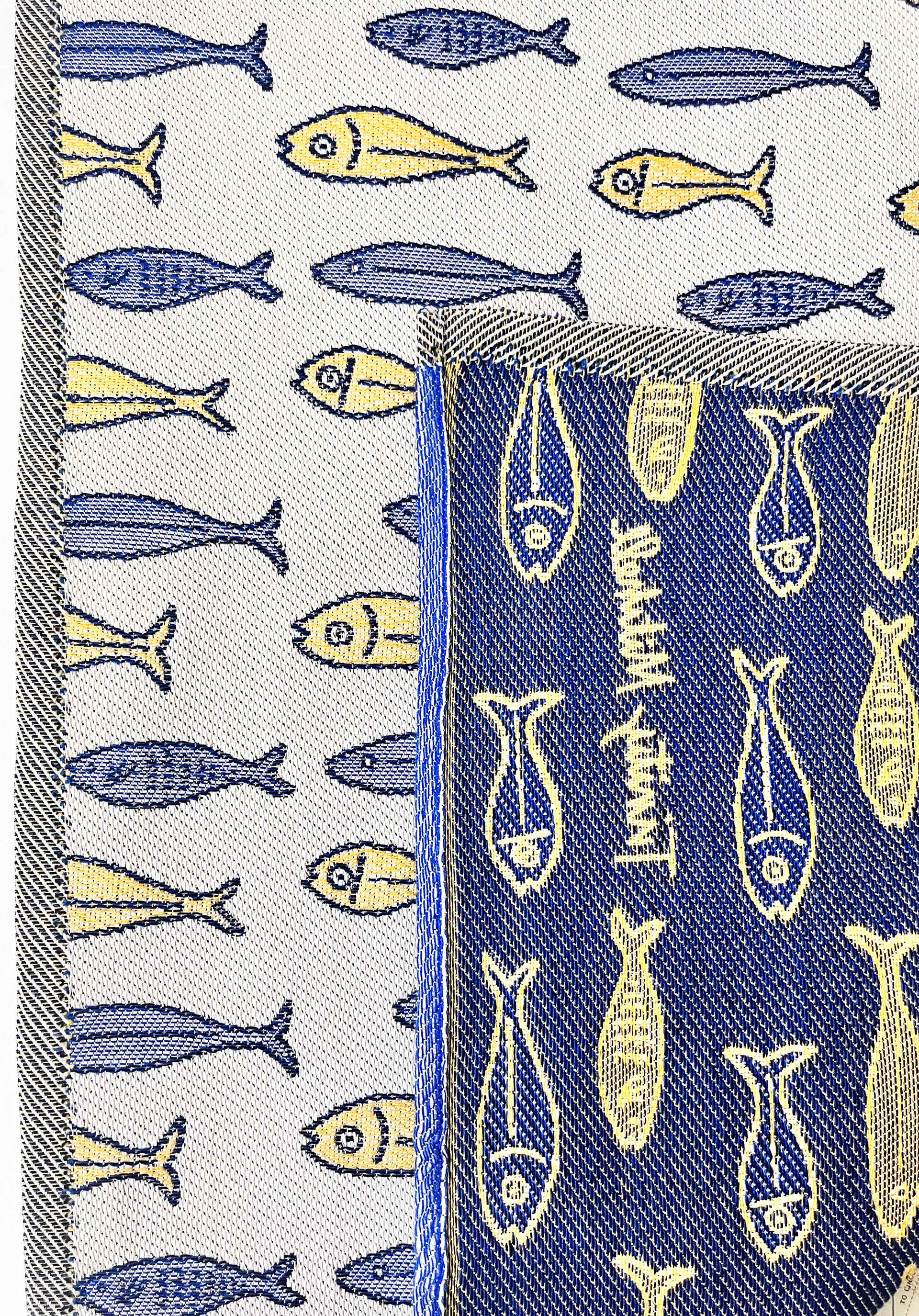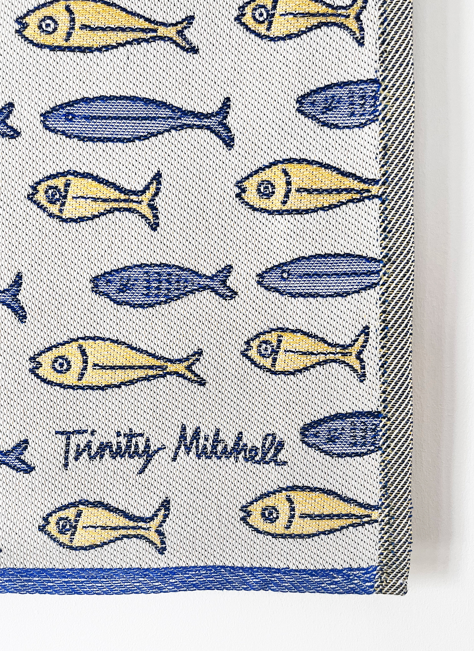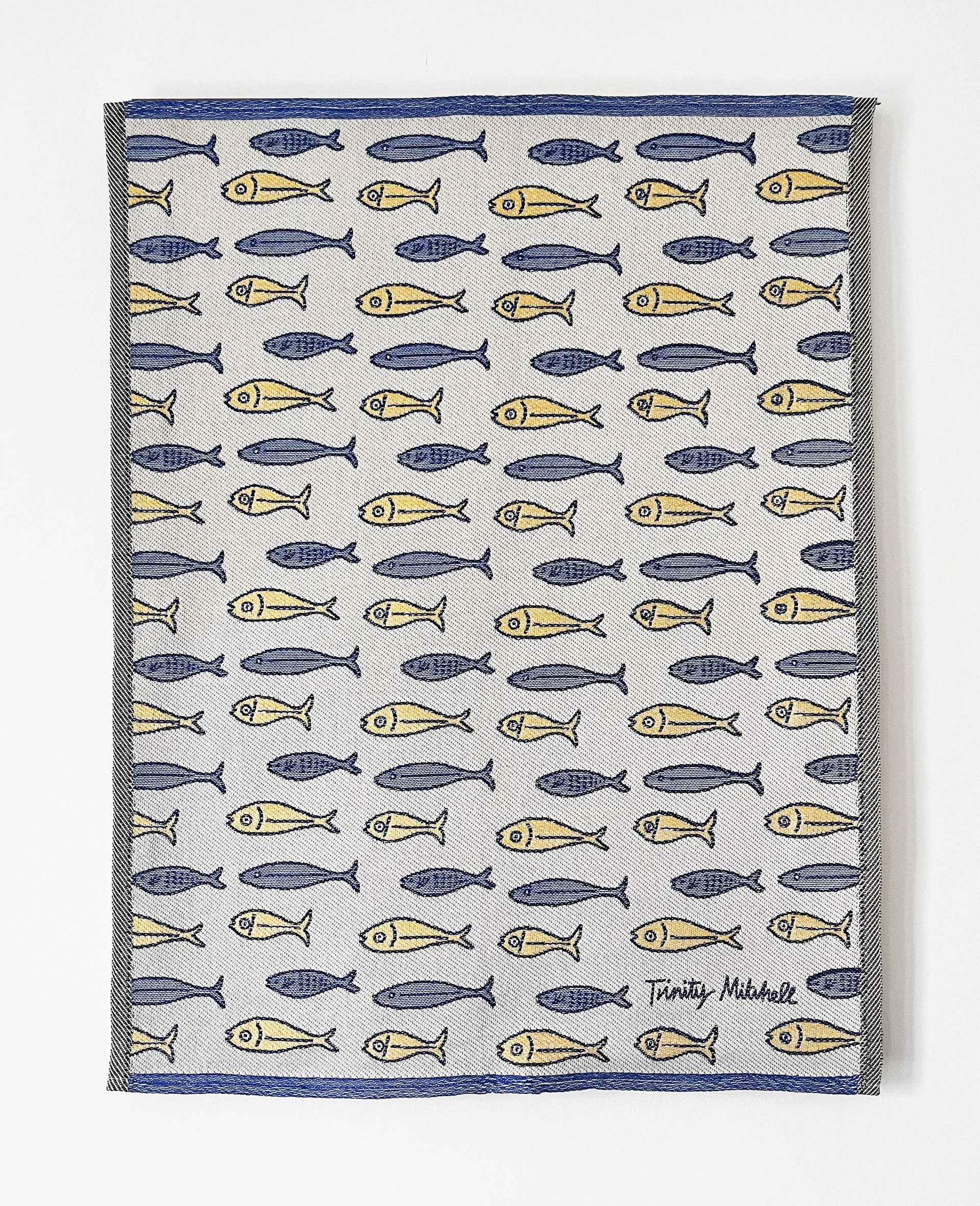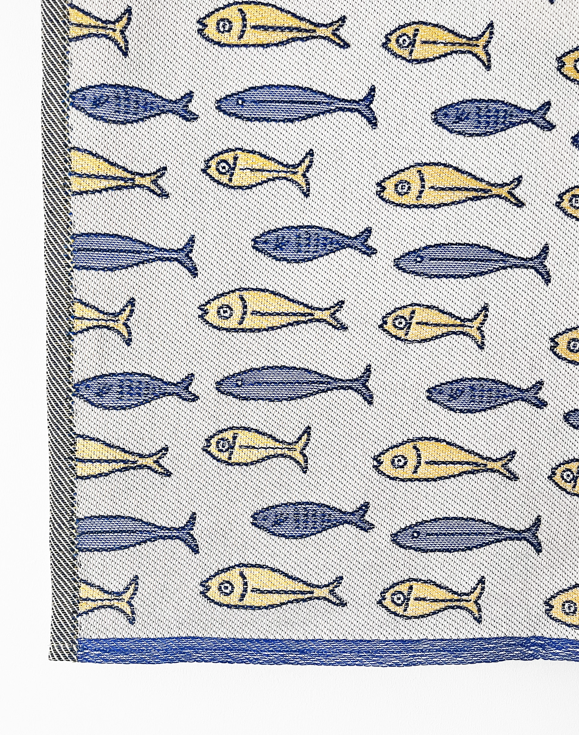 These illustrations became the perfect subjects for a Swedish theme series of tea towels, woven on a jacquard loom using only white, black, blue and yellow cotton threads.