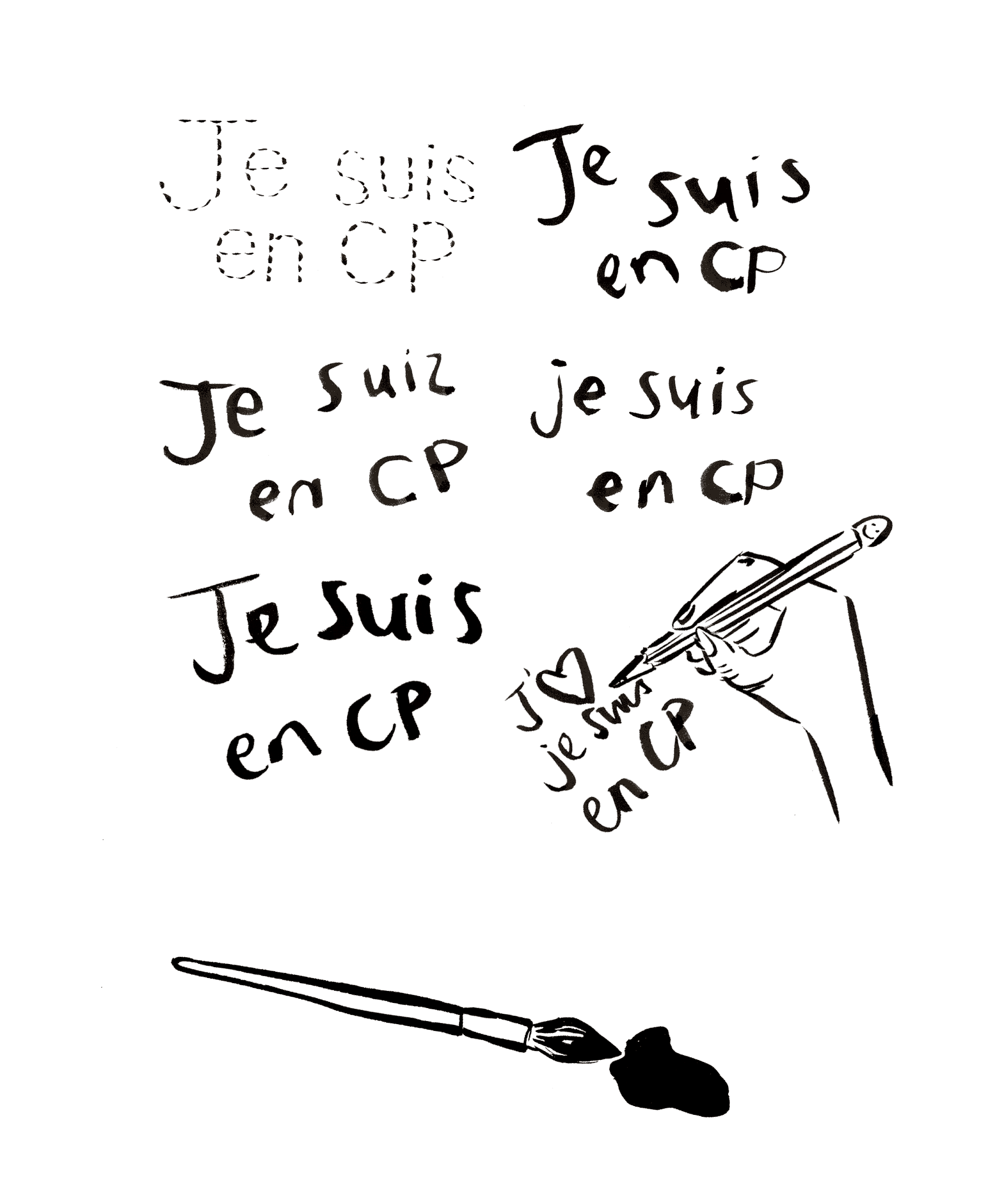 A series of illustrative placement print designs for French childrenswear brand Je Suis en CP.