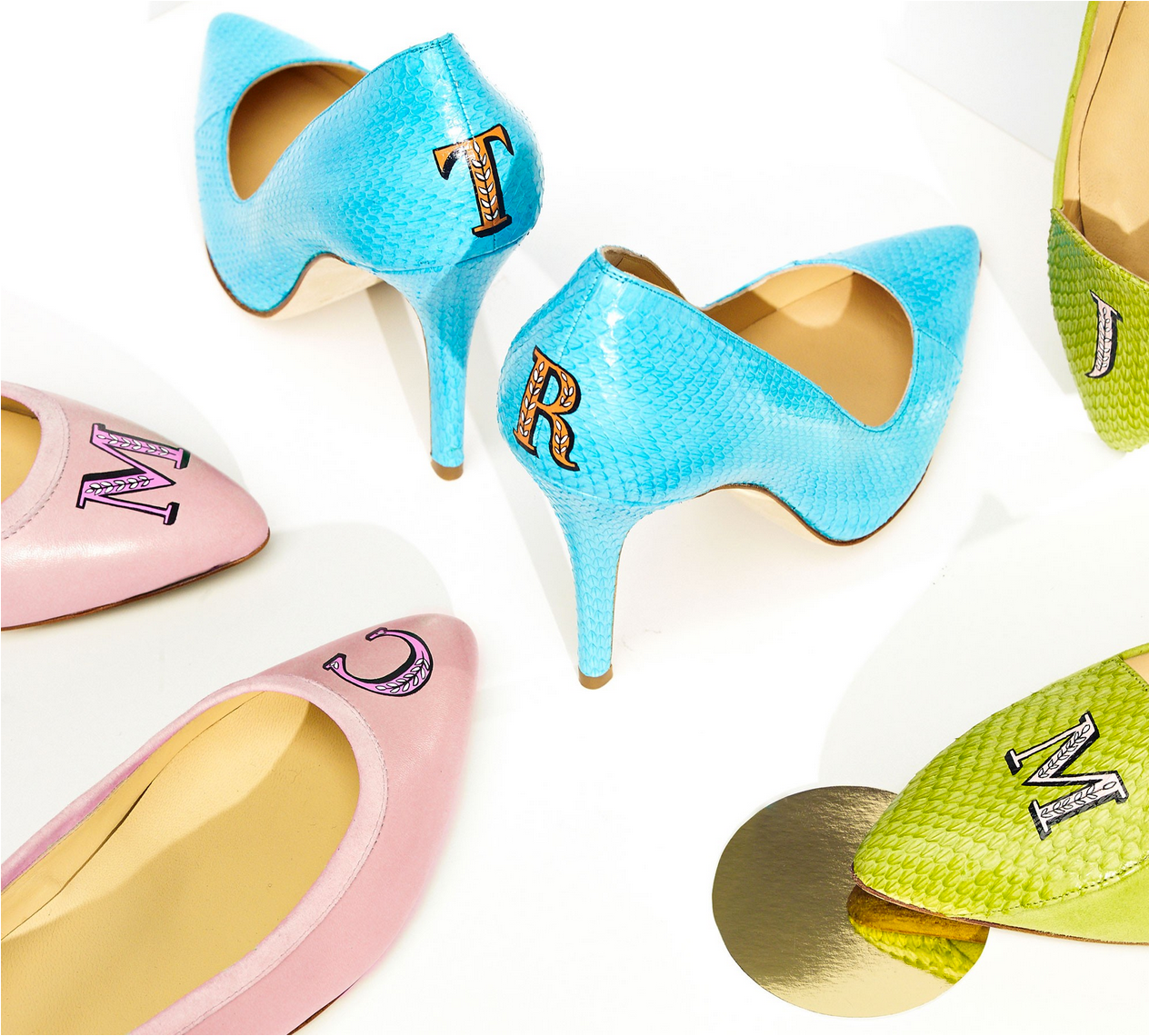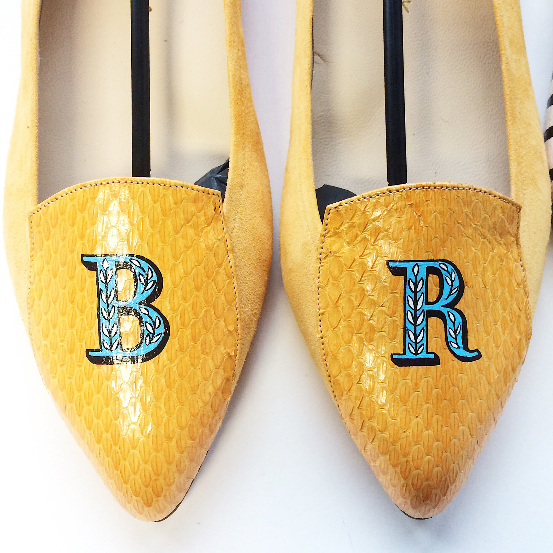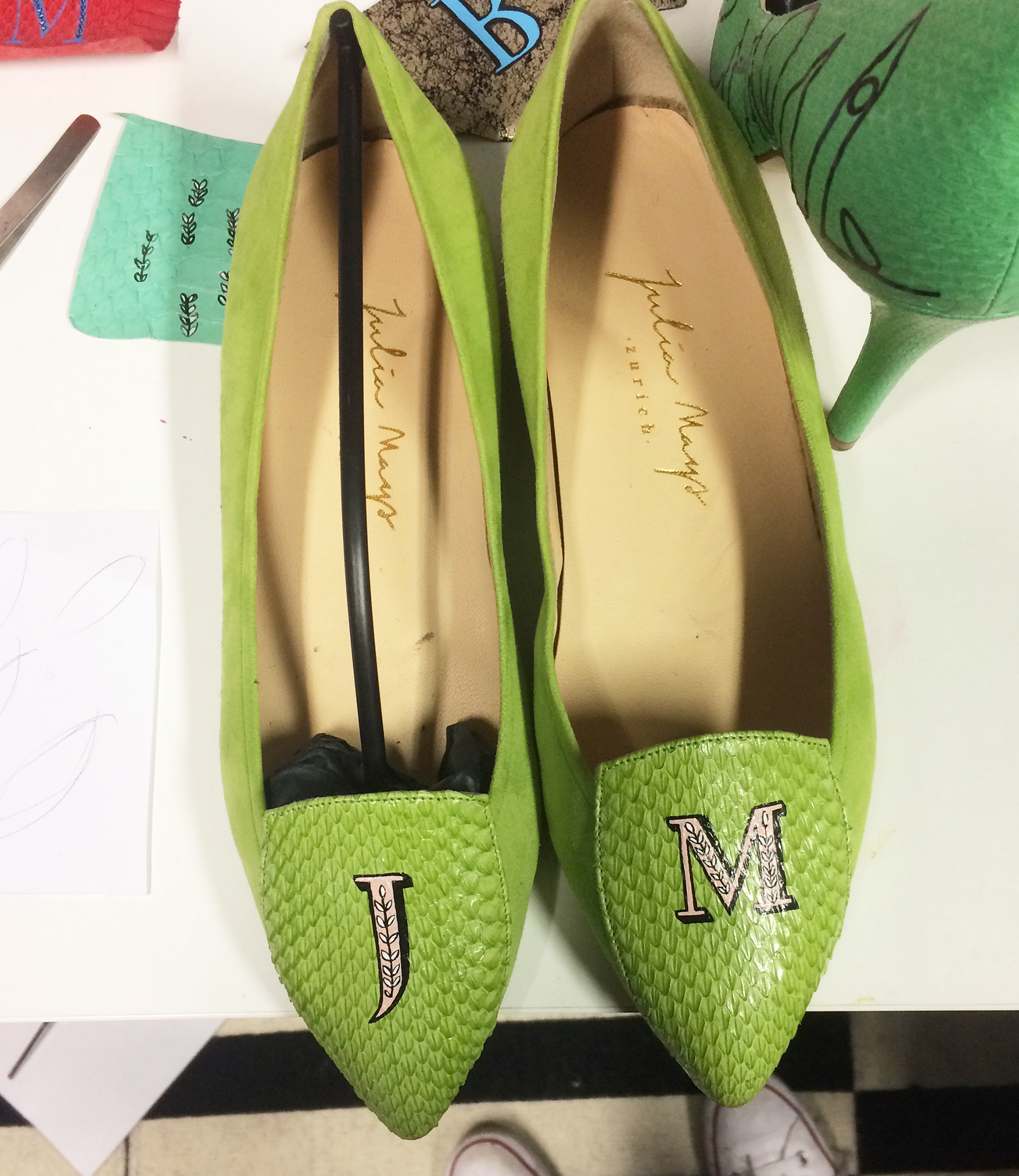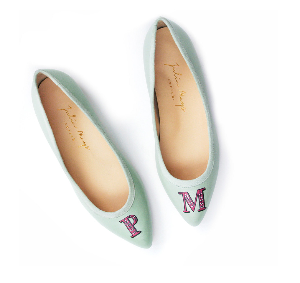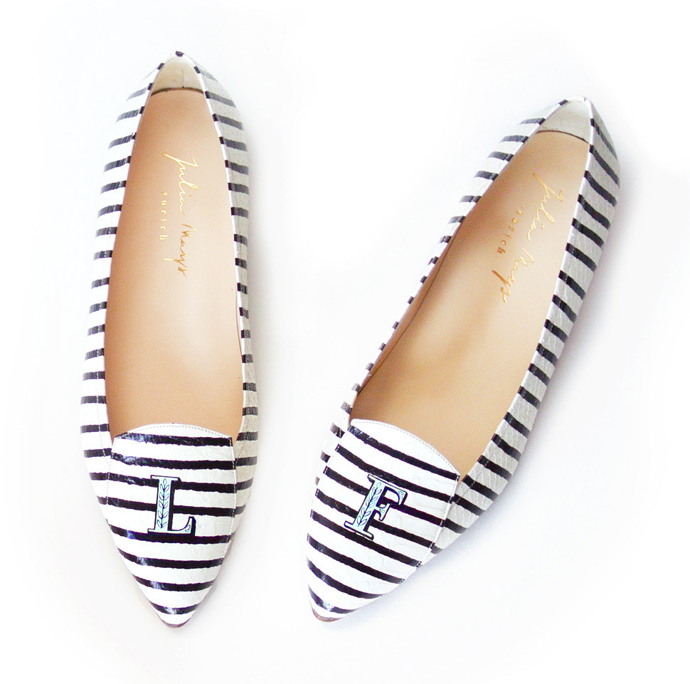 Limited edition, hand-painted monograms on Italian leather shoes for Julia Mays Footwear.