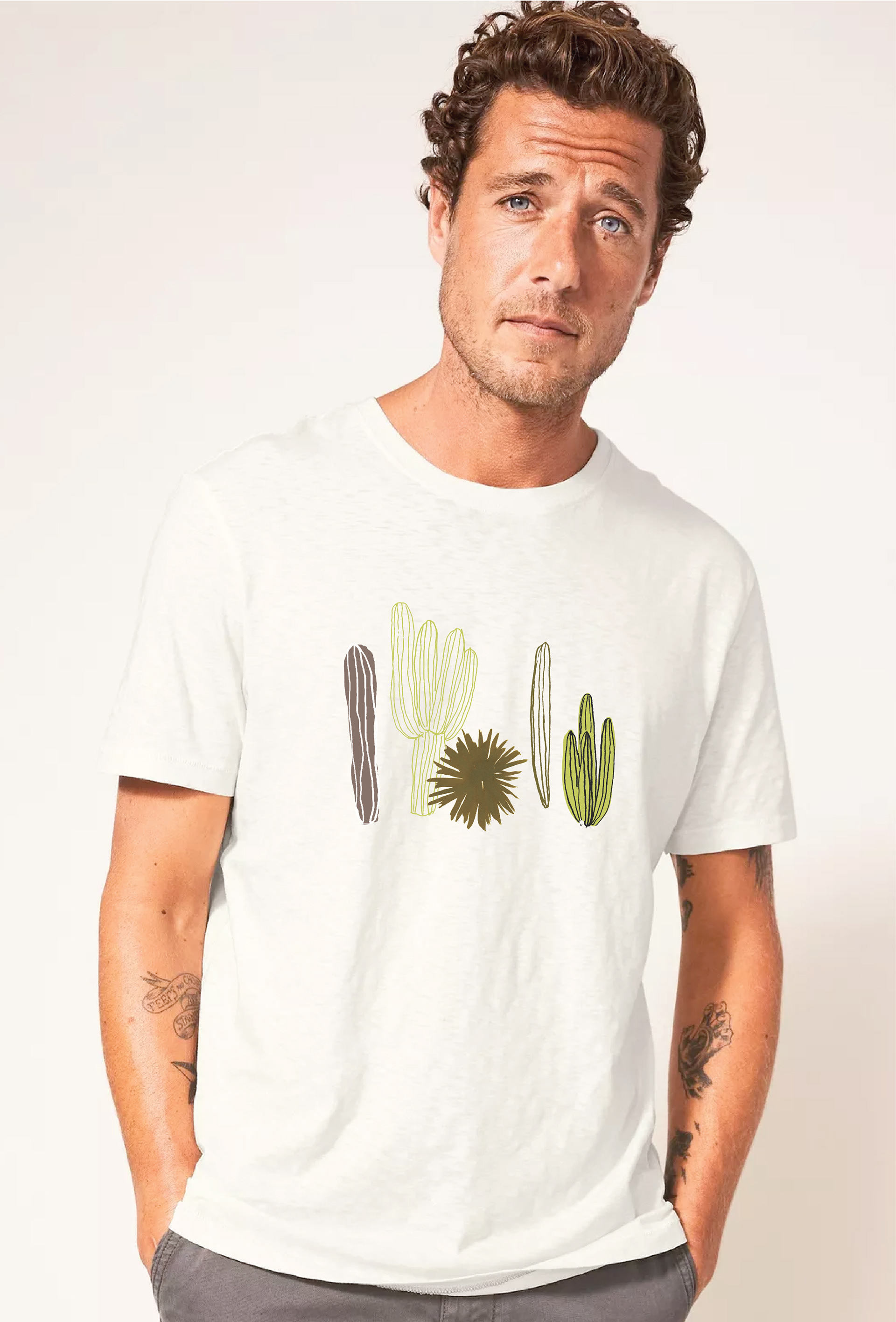 Menswear graphic for a high street retailer, based on the Majorelle Gardens in Marakesh, using illustrative ink drawing and block colour.