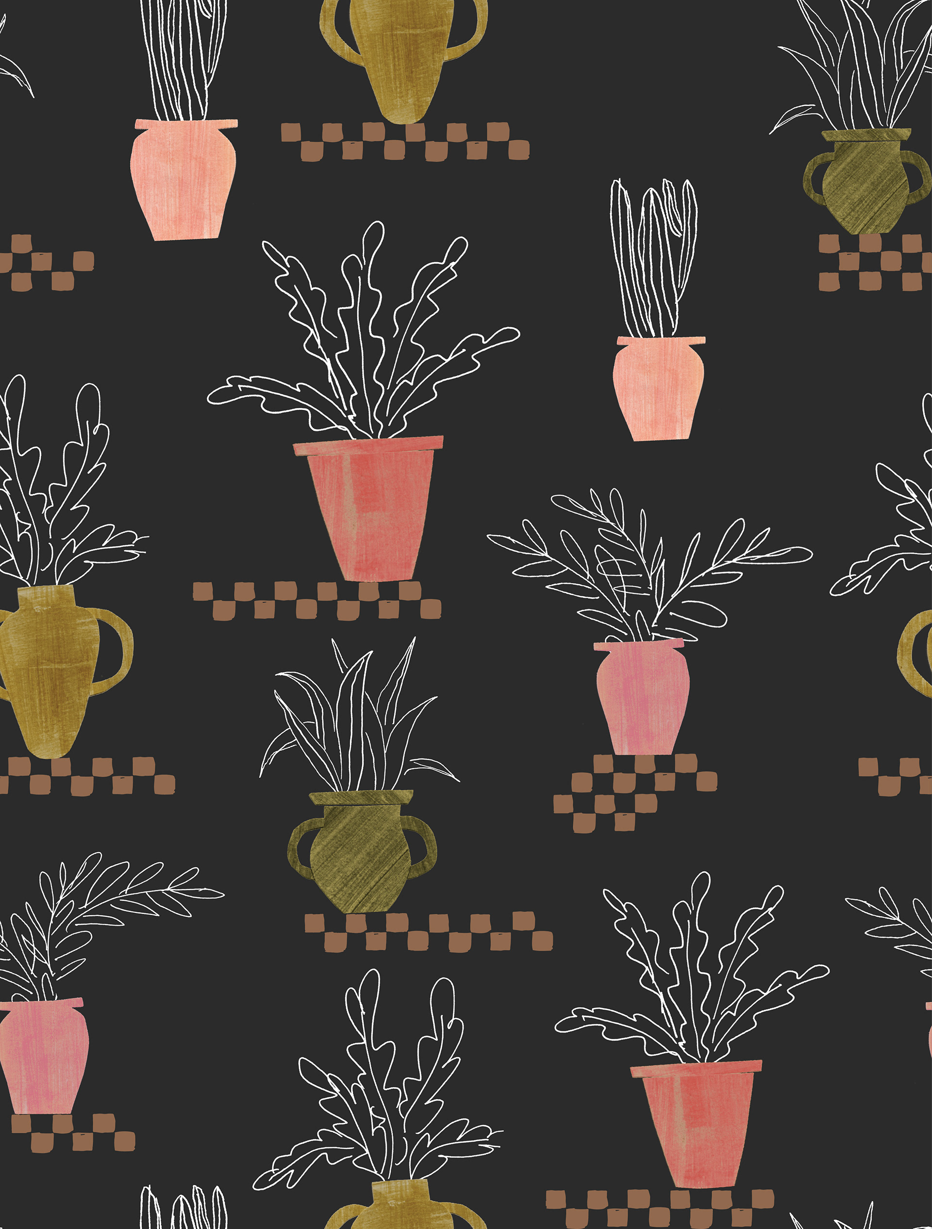 Menswear conversational print design for a high street retailer, based on the Majorelle Gardens in Marakesh, created using painted paper collage, ink drawings and watercolour.