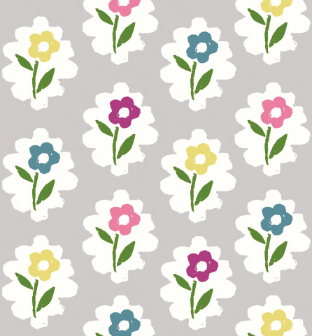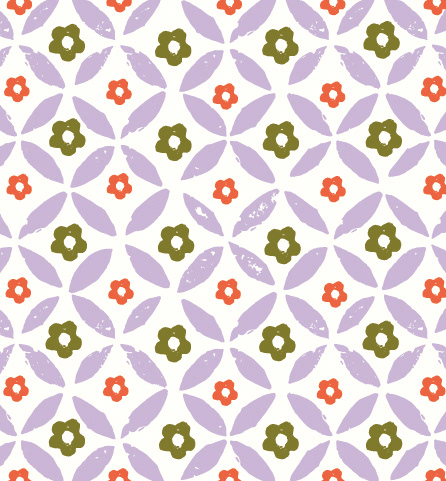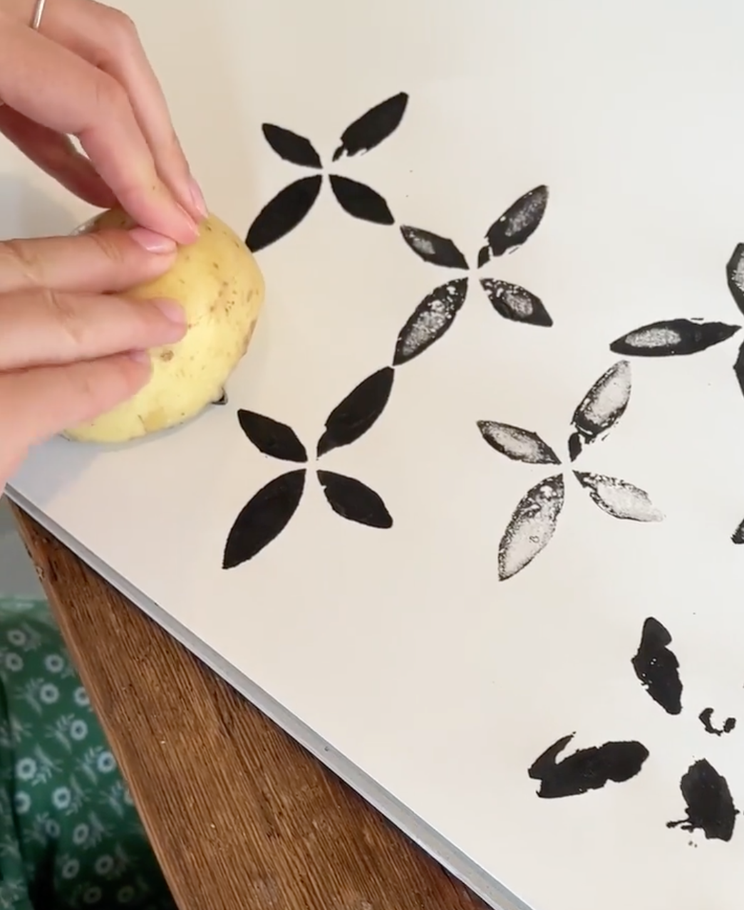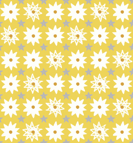 Print designs created entirely from carved potato prints, digitally composed and coloured.