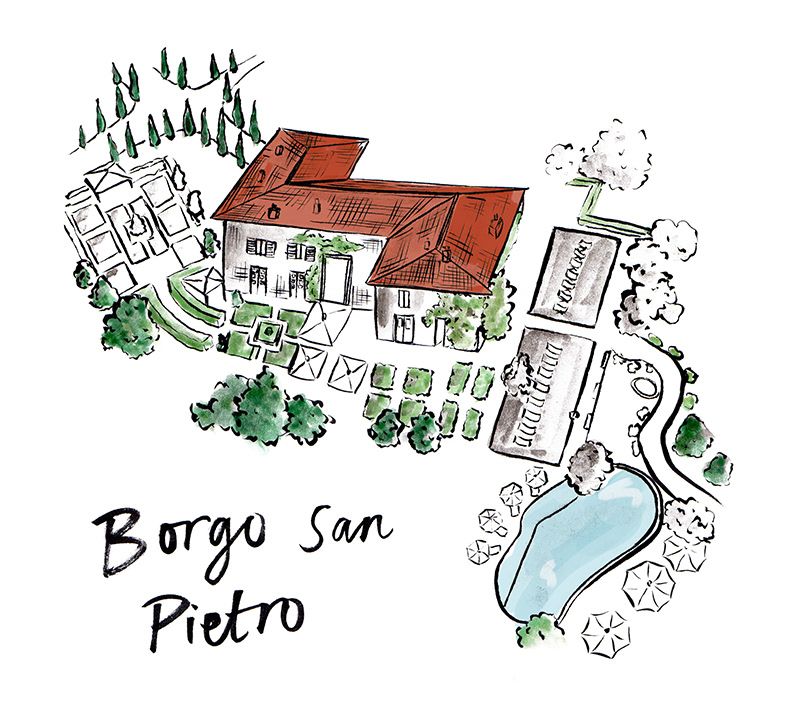 A series of illustrations for The Borgo Times; The in-house magazine for luxury 5 star hotel Borgo Santo Pietro in Tuscany.