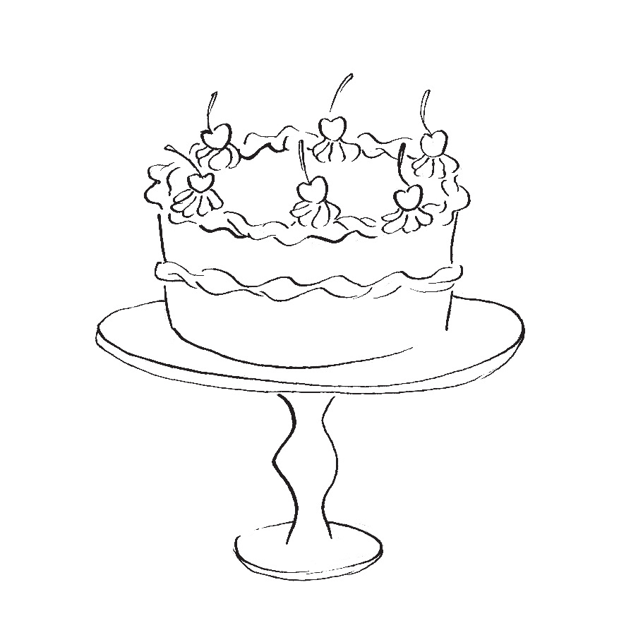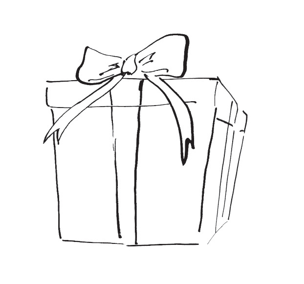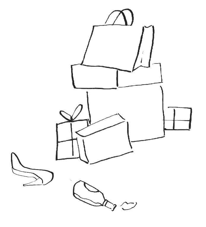 Sketchy line drawings depicting all the small delights needed for treating oneself