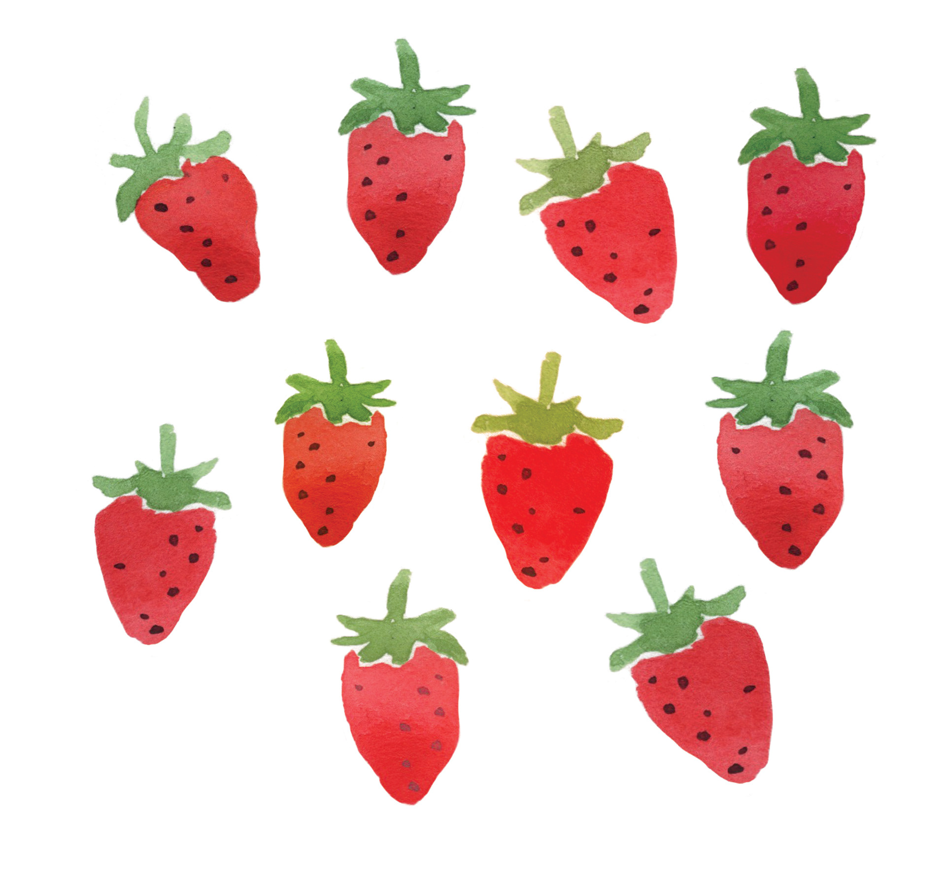 Exploration of strawberry and fruit illustrations using different application of inks.