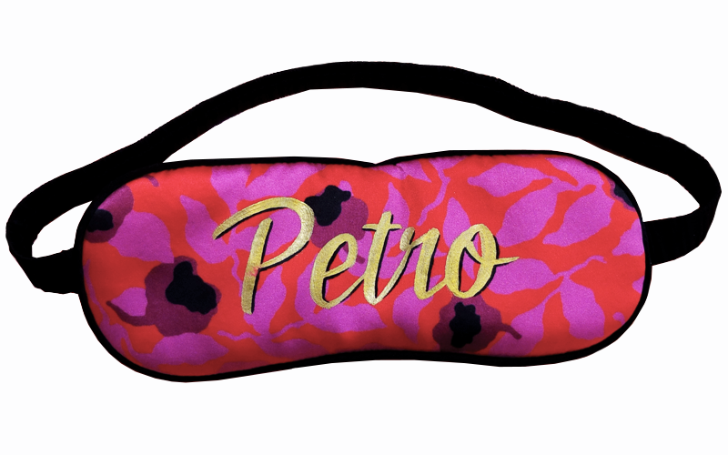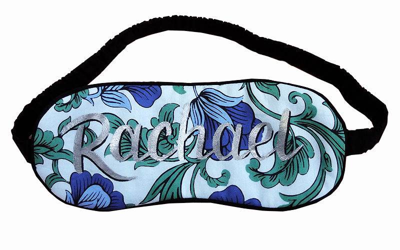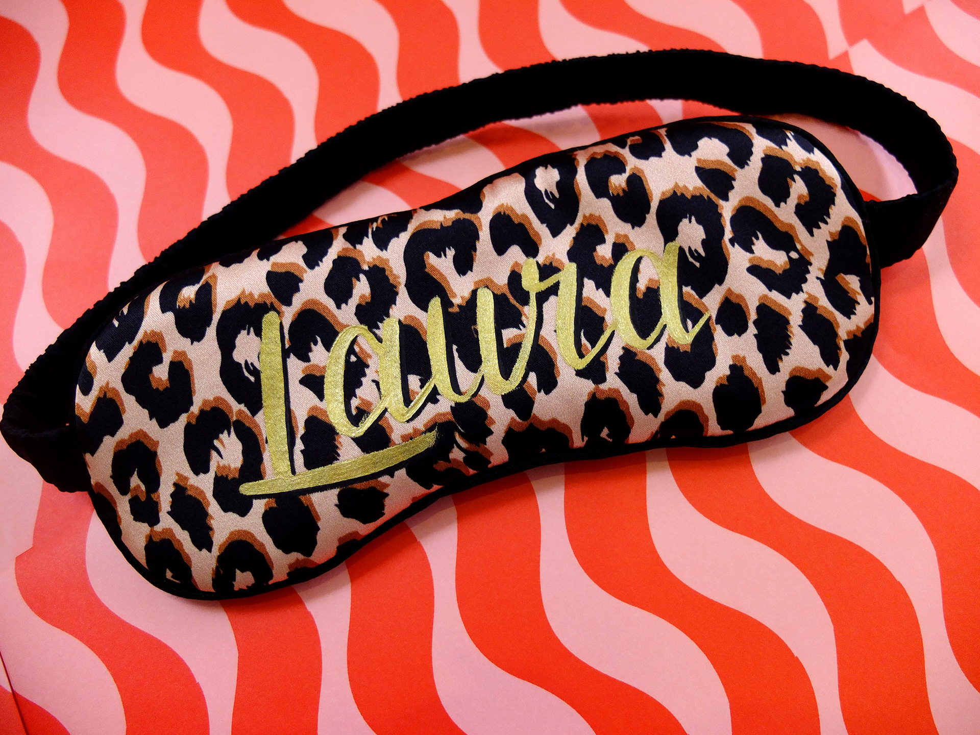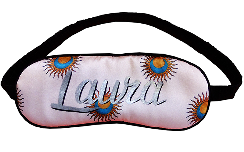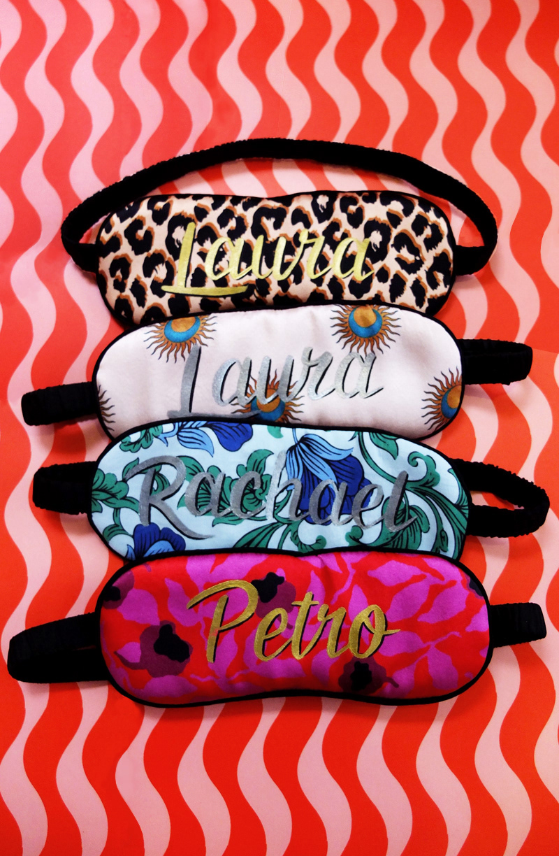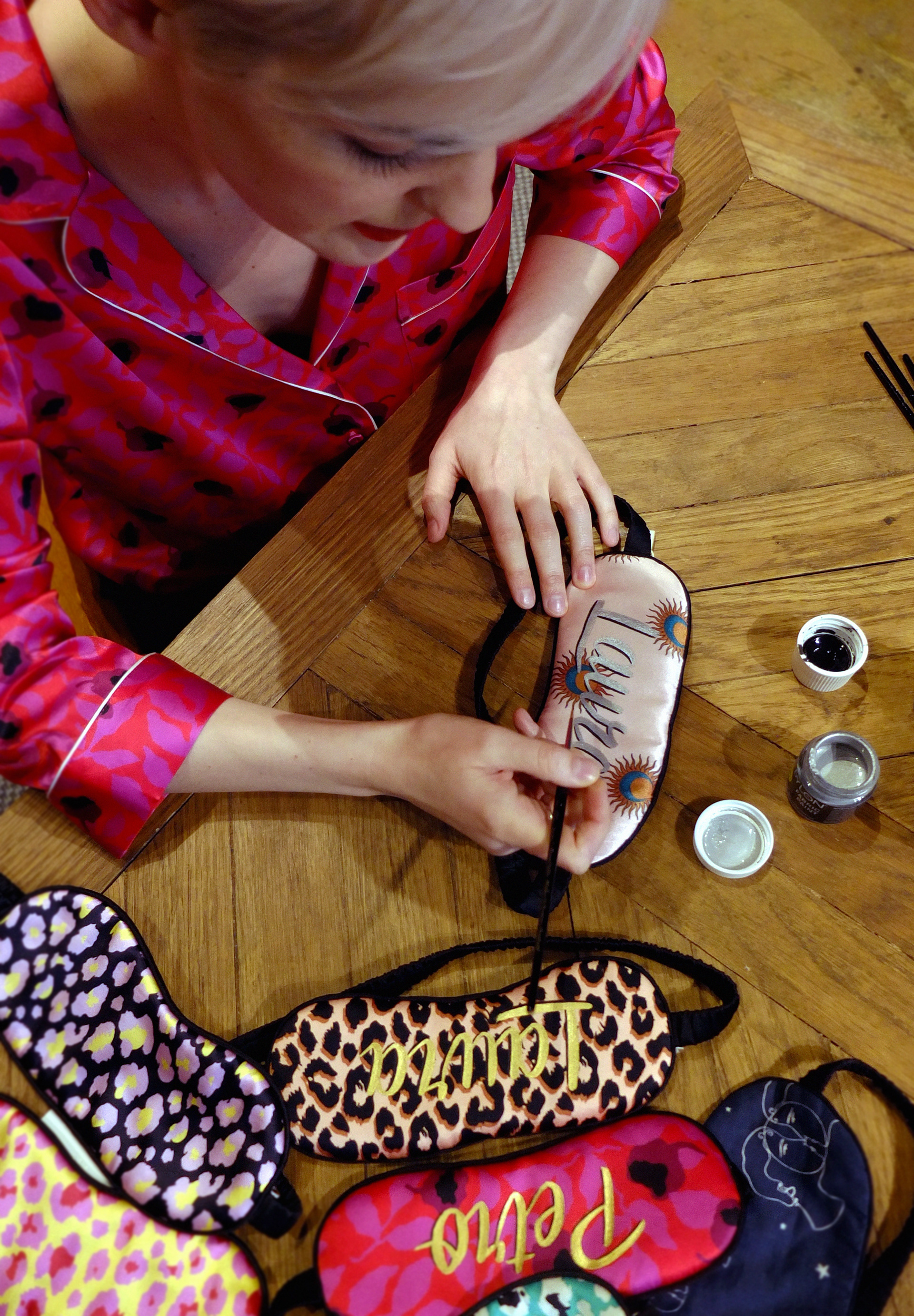 Hand-painted personalisation on silk eye masks for luxury sleepwear brand Yolke.